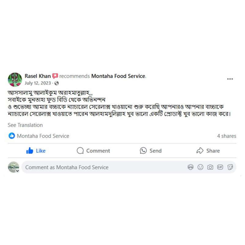 যাদের বয়স ২ বছরের উপরে তাদের জন্য প্রথমে পরিমানমত পানি/দুধের ভিতরে ২/৩ চামিচ সেরেলাক, পরিমান মত মধু/চিনি/তালমিসরি, সামান্য লবন দিয়ে সুজির মত রান্না করে দৈনিক ২ বার।